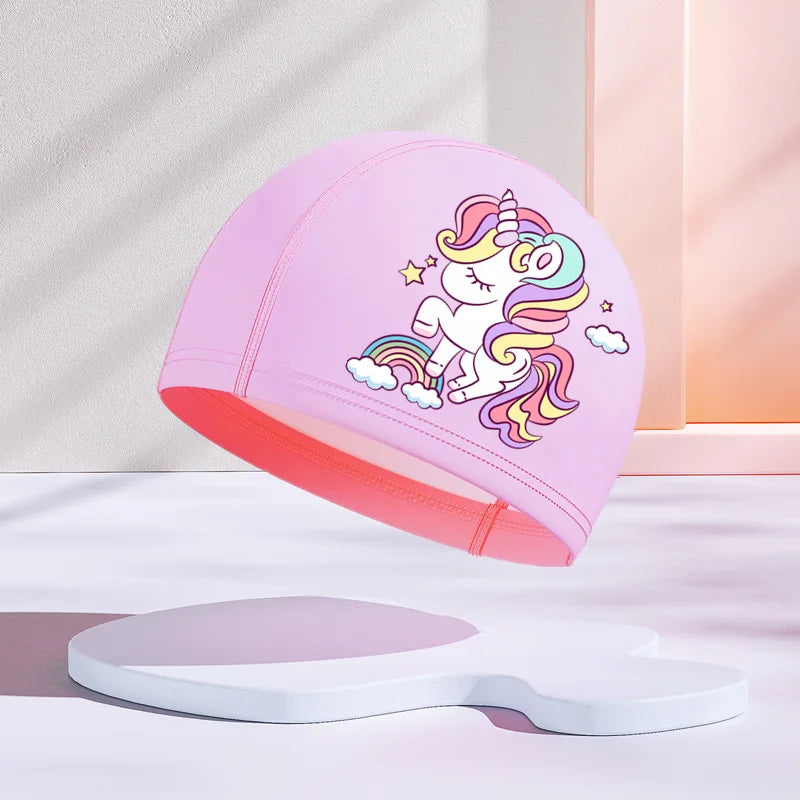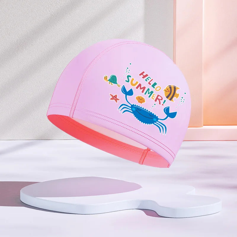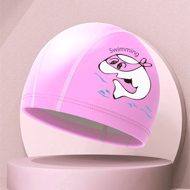 Girls Swimming Cap Cartoon Cute Waterproof High Elastic Ear Protection Swimming Hat for Children Boys Kids Swimming Accessories