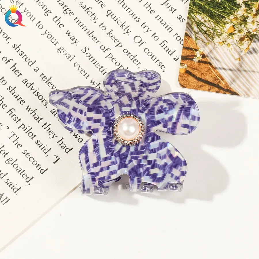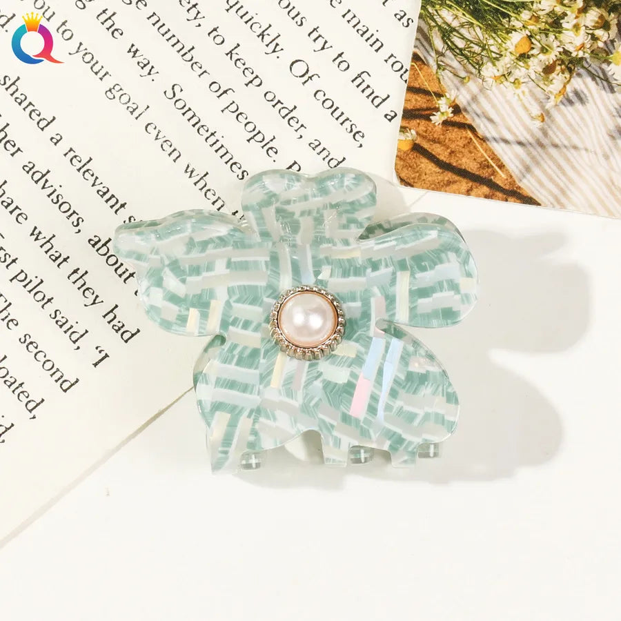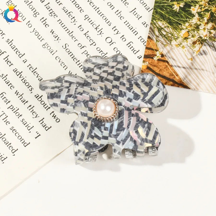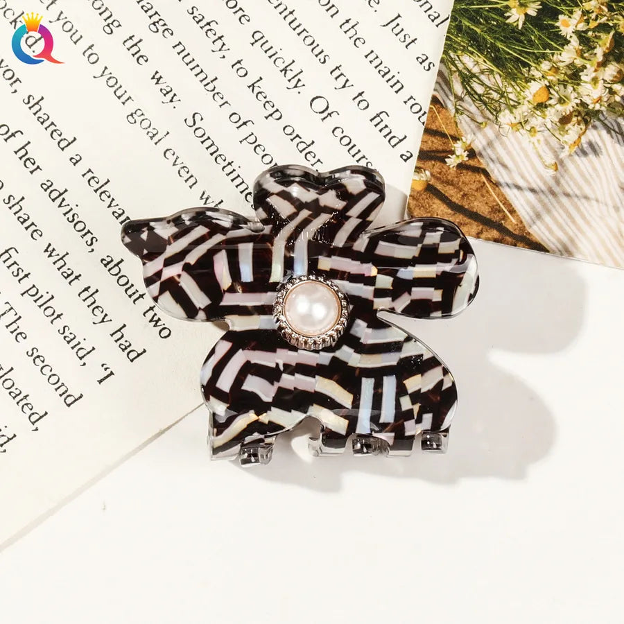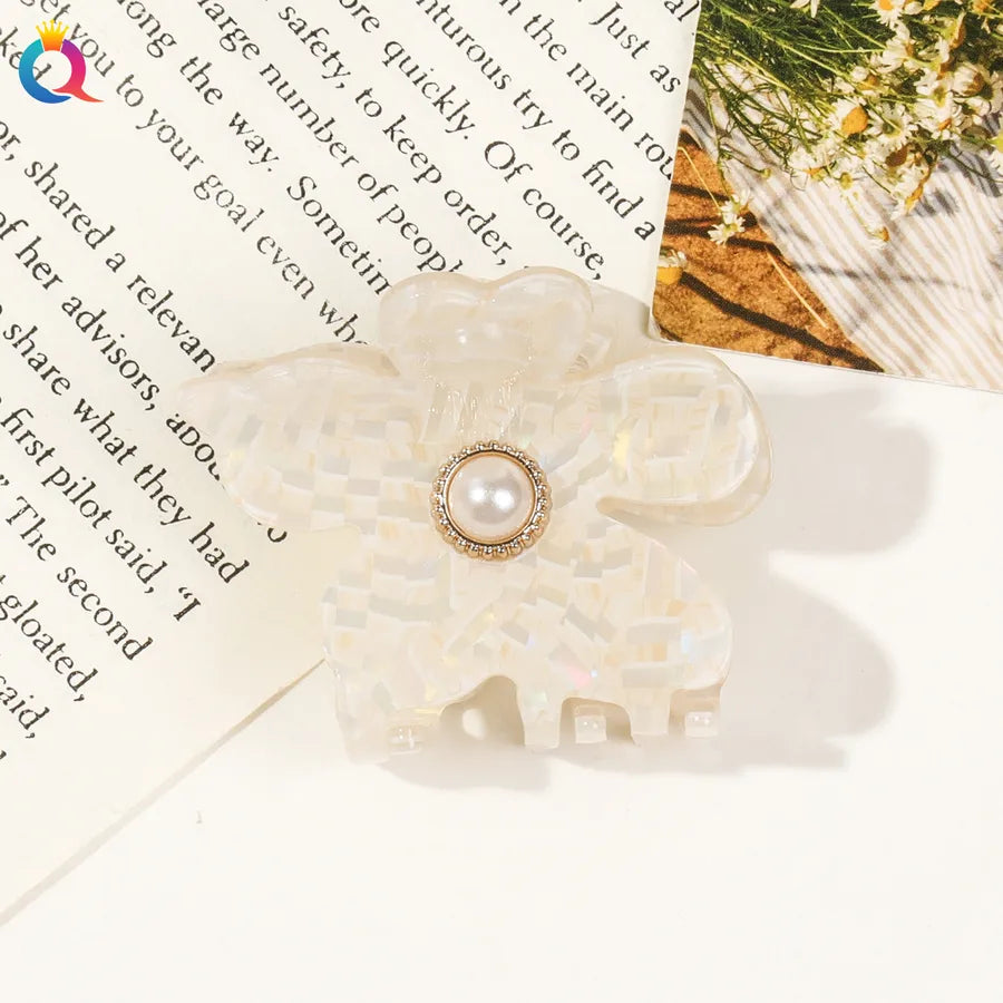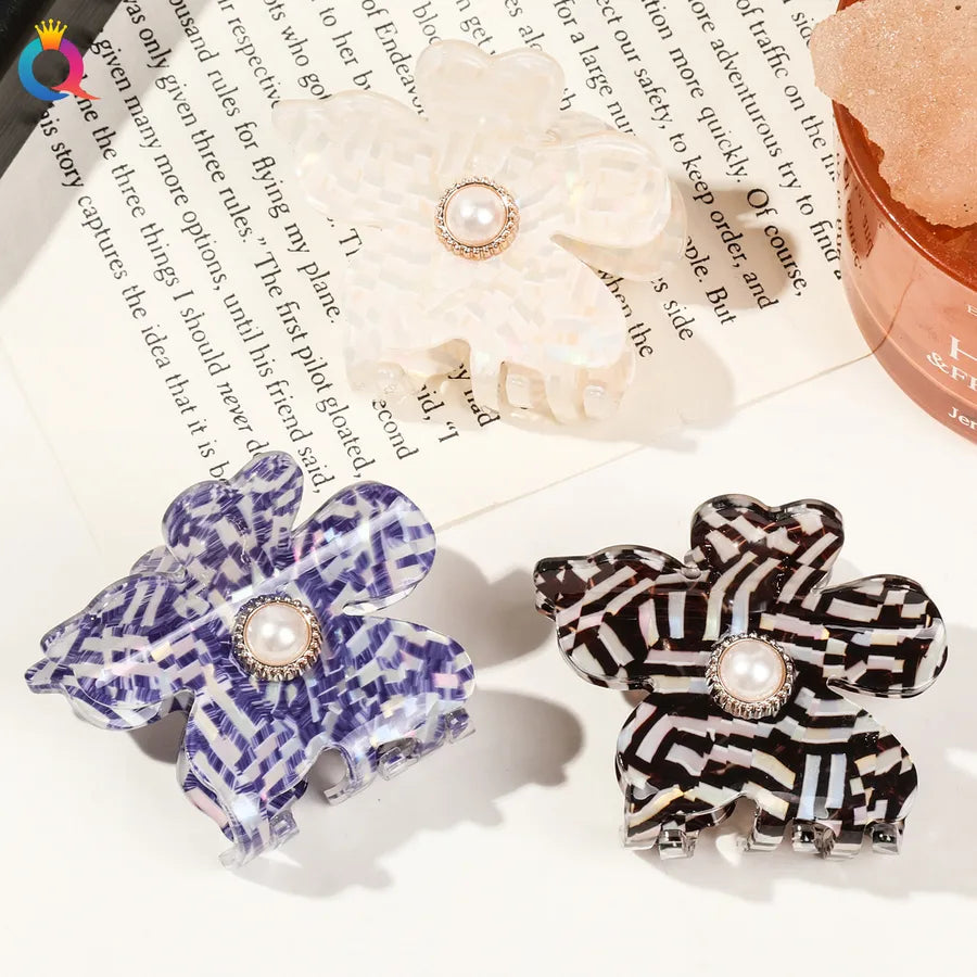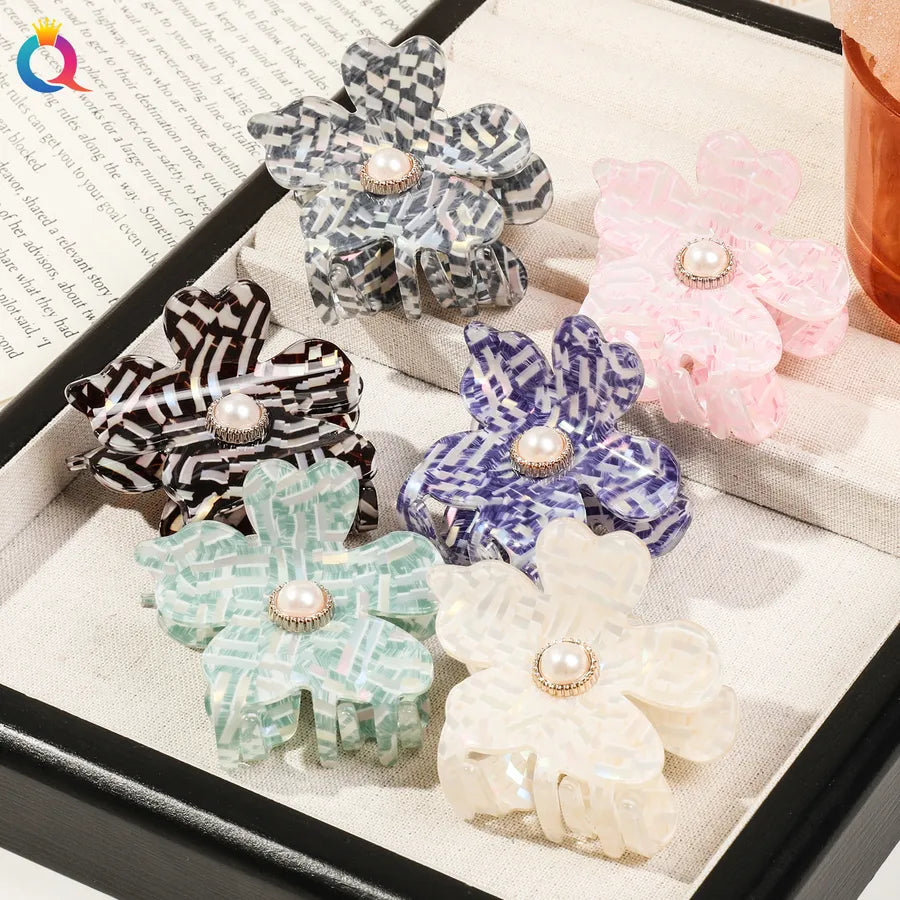 Acrylic Pearl Five-Petal Flower Hair Clip Shark Bite Hair Accessories For Women Simple Style Hair Decorations