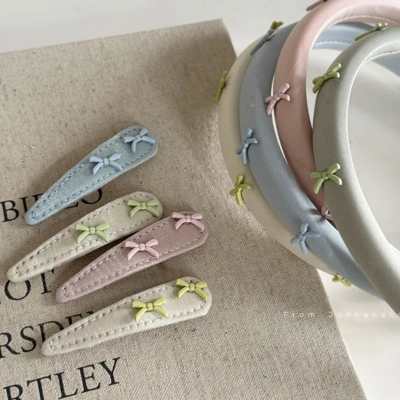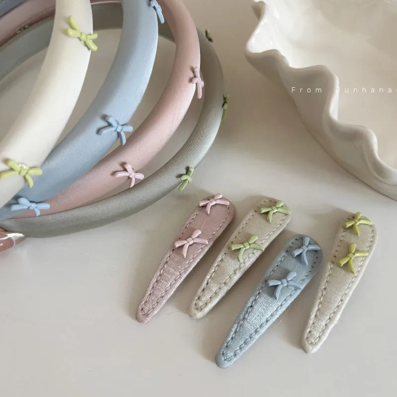 Elegant Blue Pink Bow Hair Clip Women's New High-End BB Clamp Face Wash Hair Bundle Quality Hair Card Headband