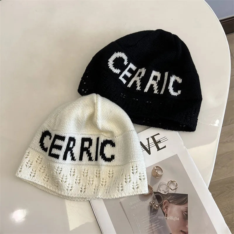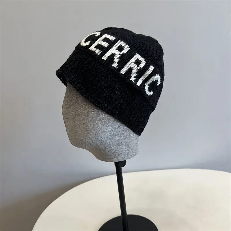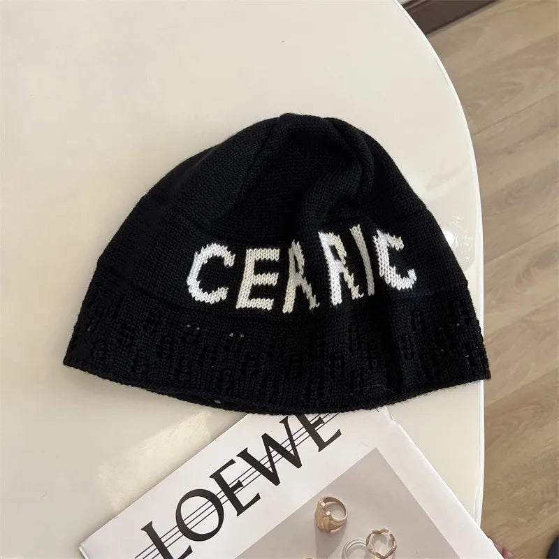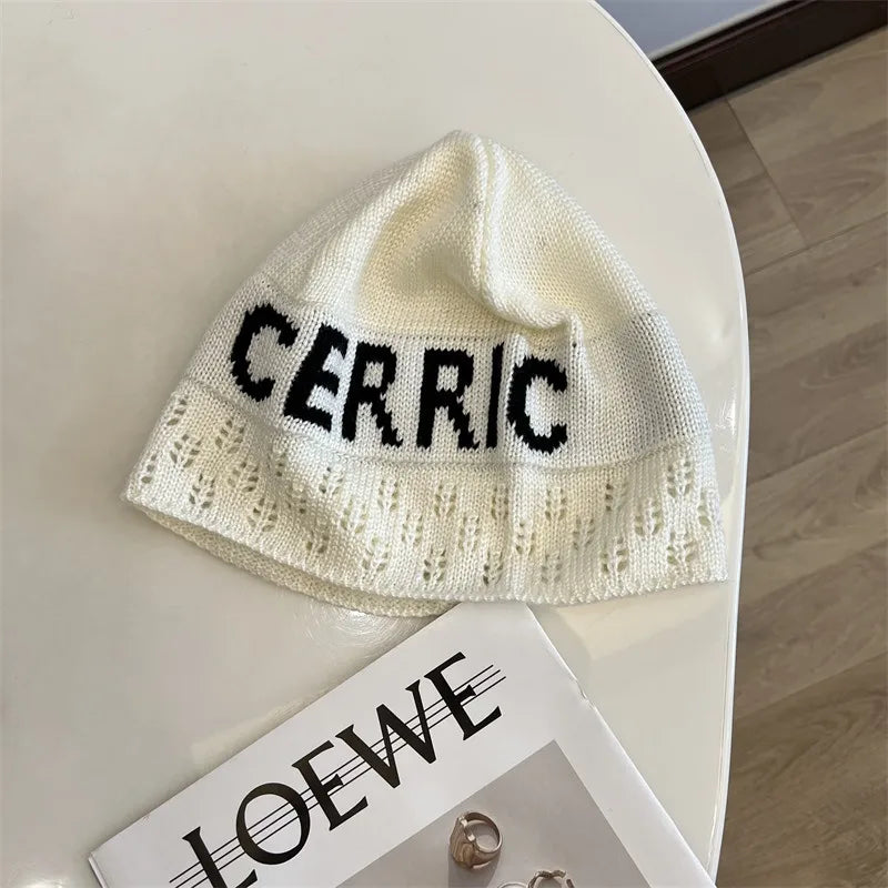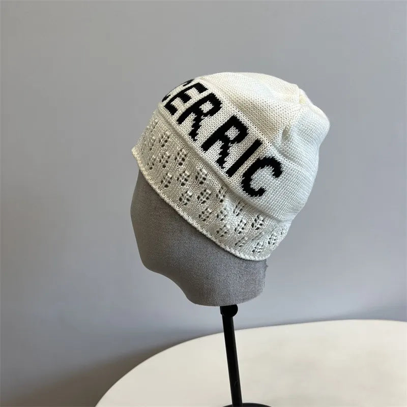 New Style Thin Knitted Woolen Beanie Hat Unisex Street Fashion Casual Letter Embroidery All-Match Color Winter Cap