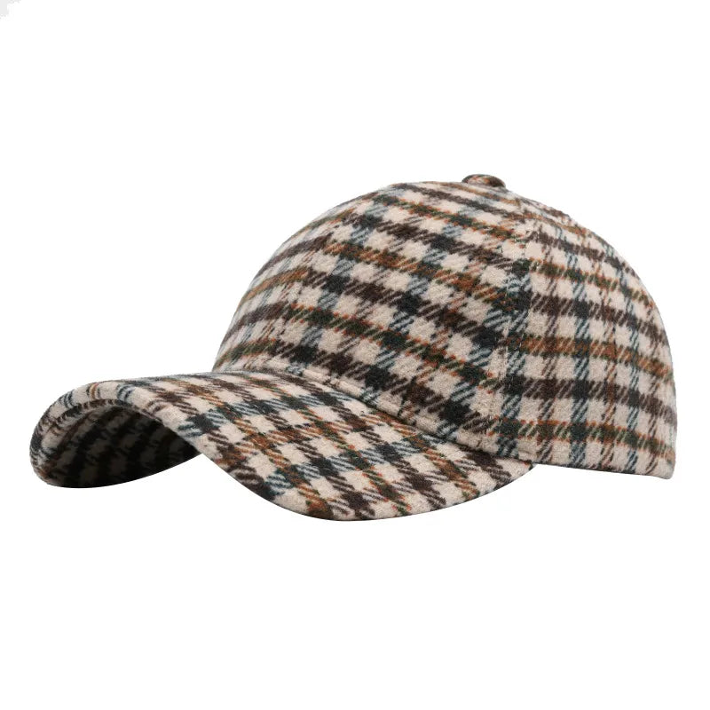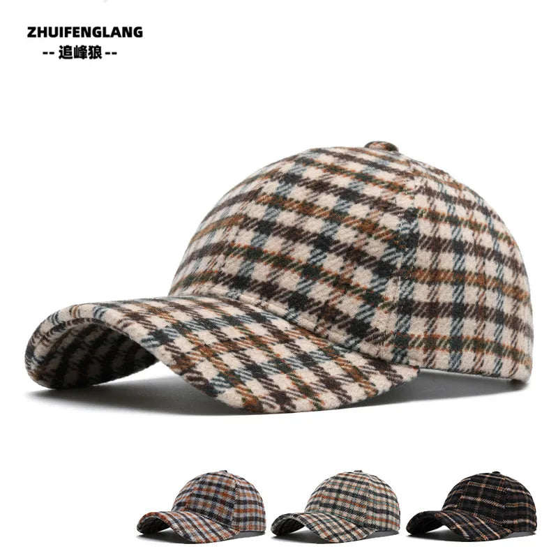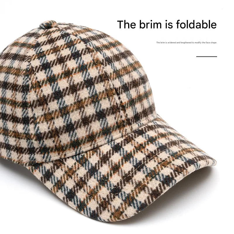 Unisex Plaid Hard Top Baseball Cap Autumn Winter Warm Colorful Hat Versatile Quilted Winter Duckbill Cap Casual Basic Sports Style