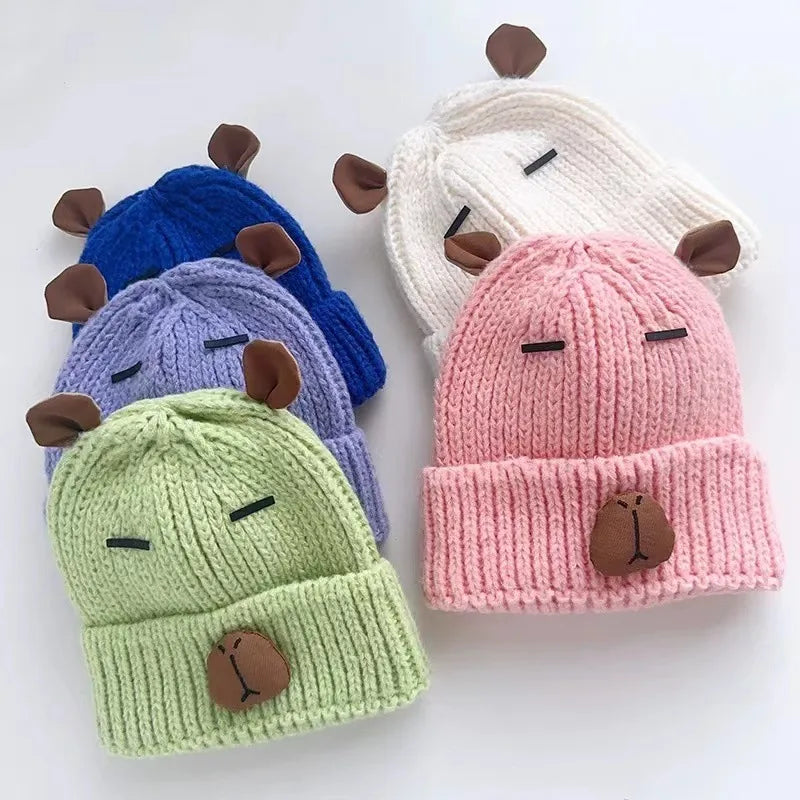 Warm Knitted Woolen Cap For Women Ear Protection Fashionable Autumn Winter Hat Cute Animal Design Ideal For Couple Kids