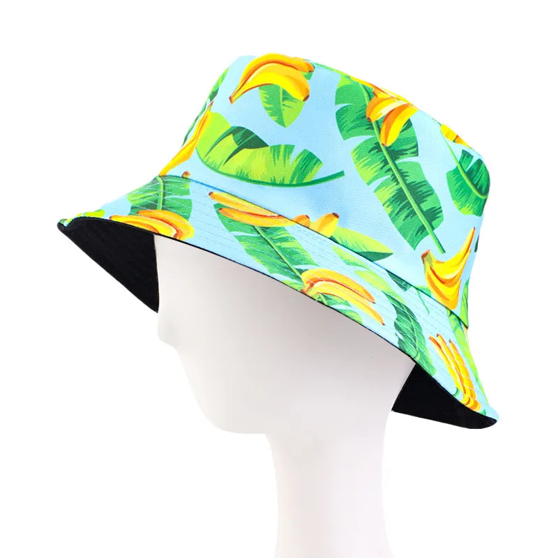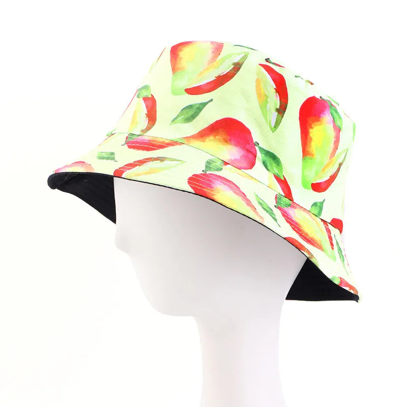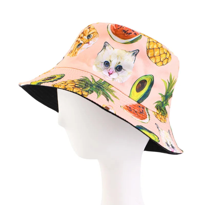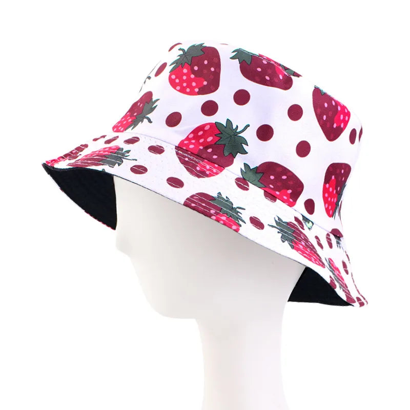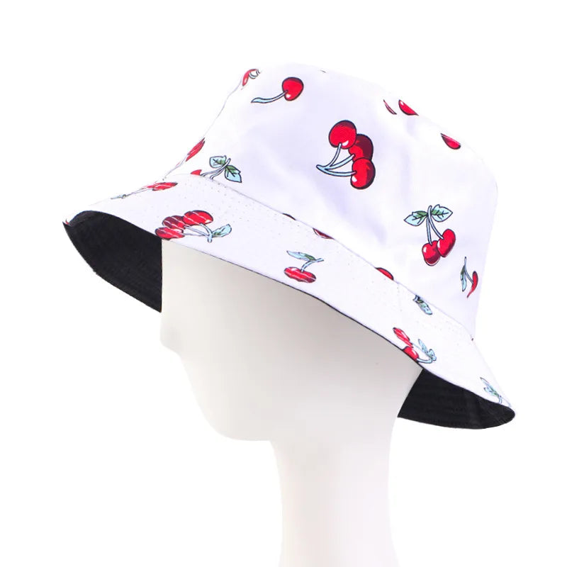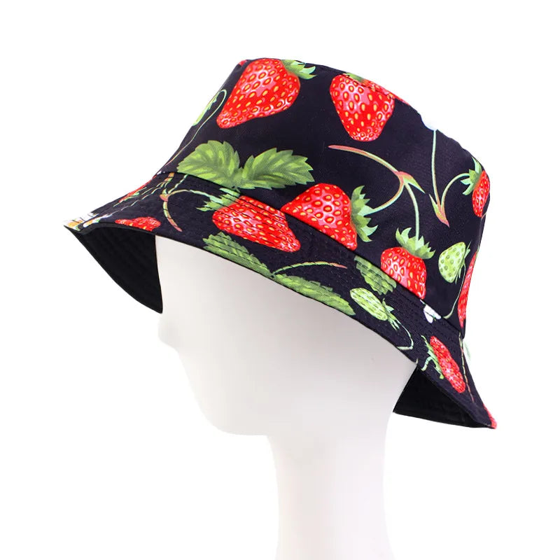 Double-Sided Wearable Summer Fashion Fruit Print Pot Hat Outdoor Travel Sun Hat JDPM-46 Casual Style Women's Sporty Flat Brim Cap