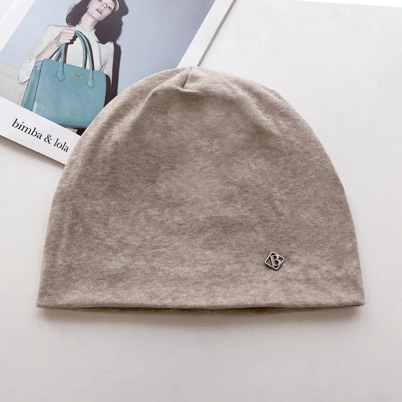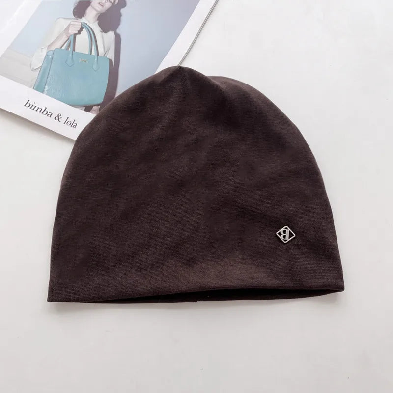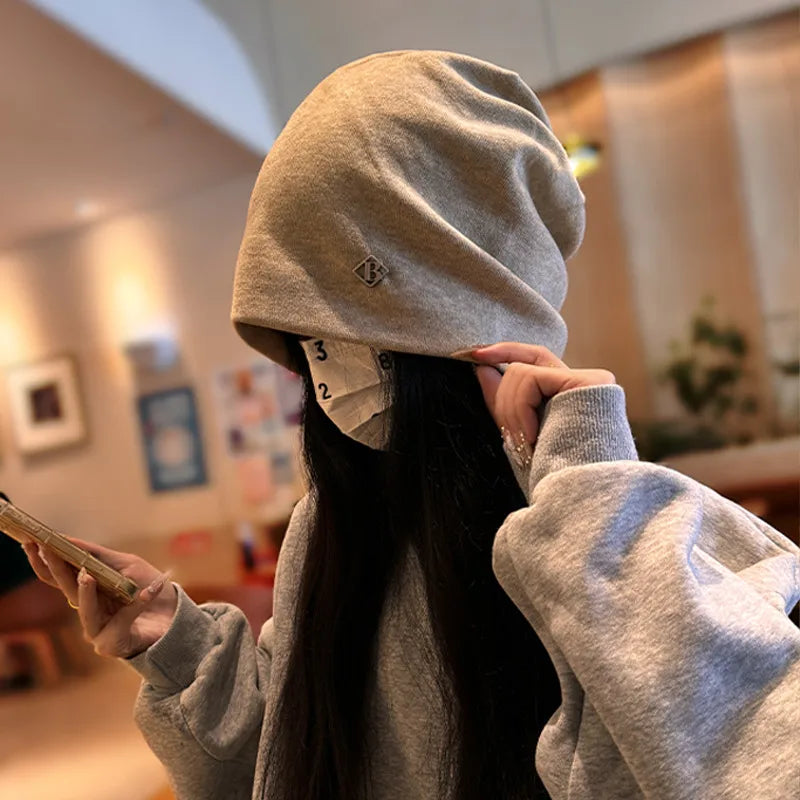 New Style Metal Letter Embroidery Solid Color Knitted Bobble Hat Couple Loose Lazy Feeling Turtleneck Cap Winter Autumn