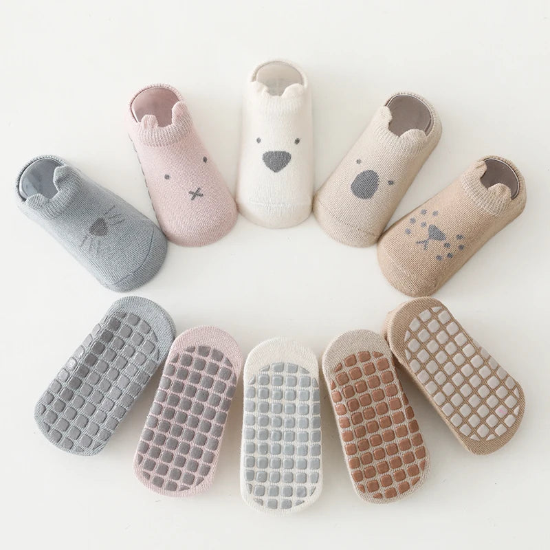 5 pairs/lot Newborn Combed Cotton Sock Toddler Non-Skid Cute Cartoon Animals Floor Socks Spring Summer Children Gripper Socks gogodiggity