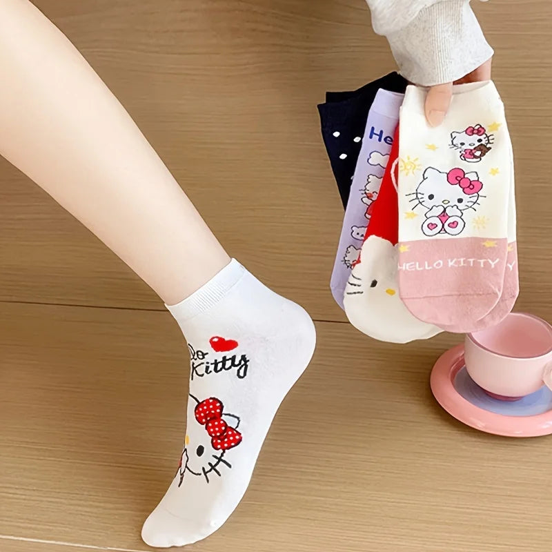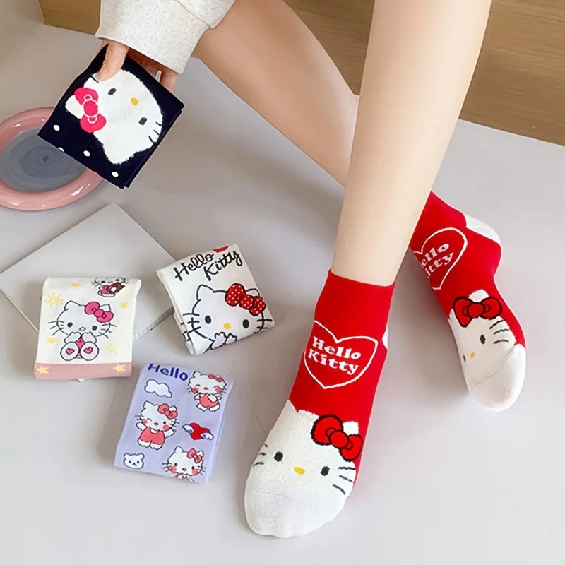 5 Pairs Sanrio Hello Kitty Women Socks Kawaii New Fall Cartoon Children Mid-calf Socks Combed Cotton Sock for Girls