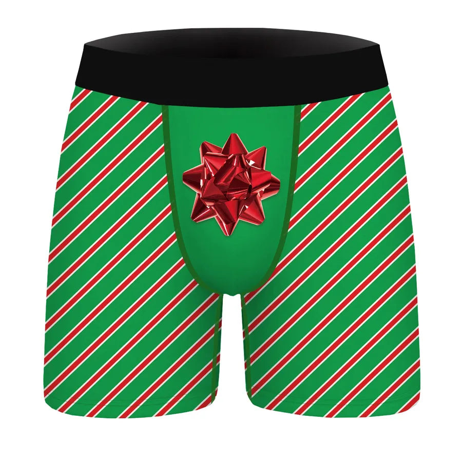 In Stock Wholesale Green Fur Weird Christmas Digital Printing Men's Breathable Underwear Daily Wear Comfortable Stretch Boxers