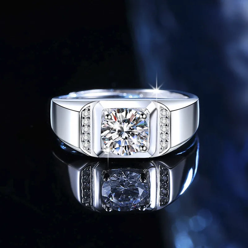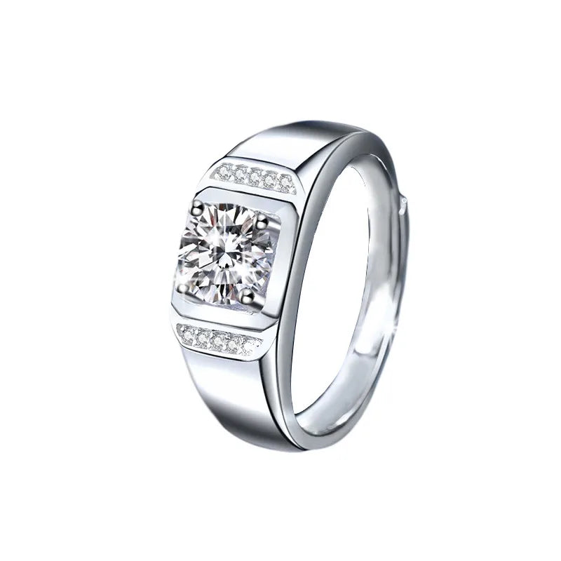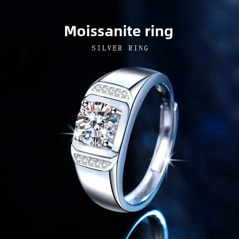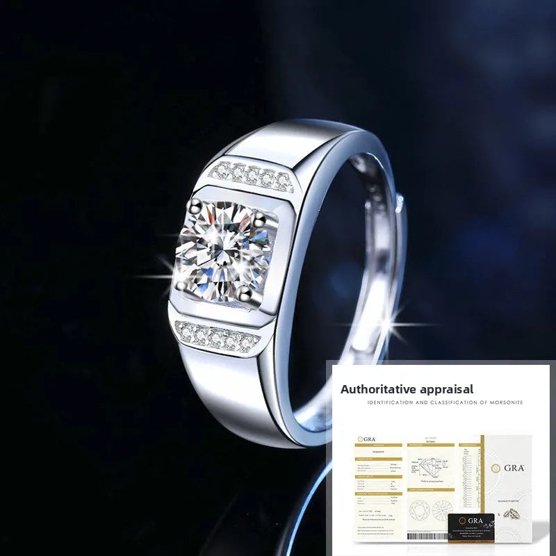S925 Sterling Silver Ring With 1 Carat Moissanite For Men Bold Index Finger Ring Fashionable And Elegant Wedding Ring
