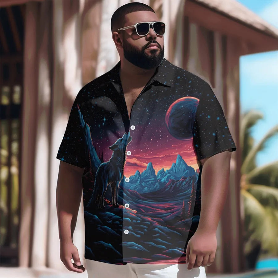 Spring and summer Europe and the United States new men's plus size shirt short sleeve 3D printing trade beach vacation relaxed-fit and comfortable