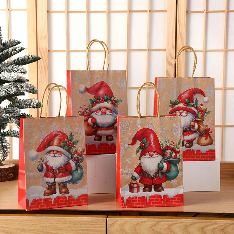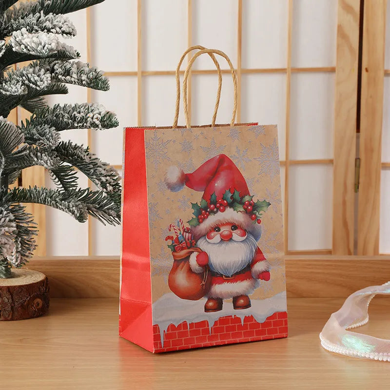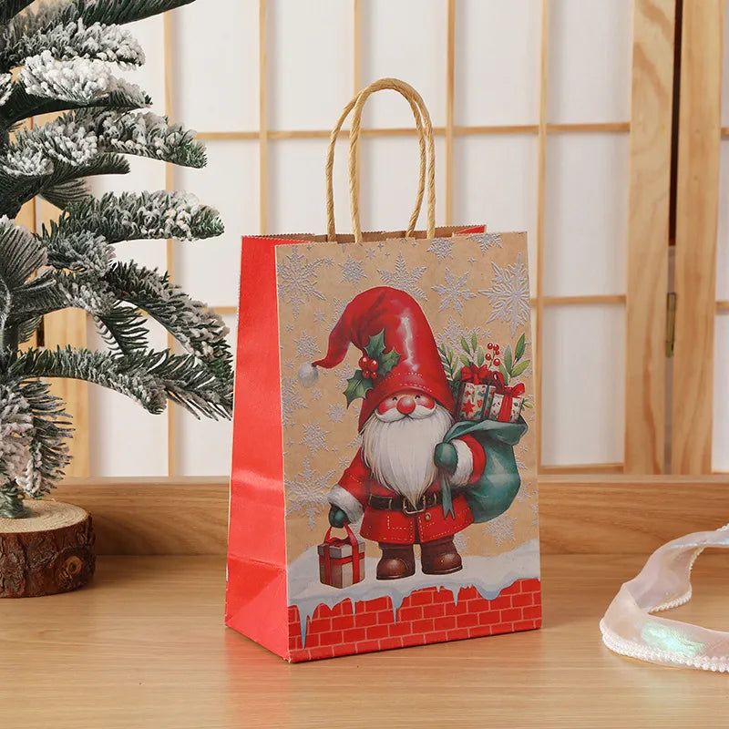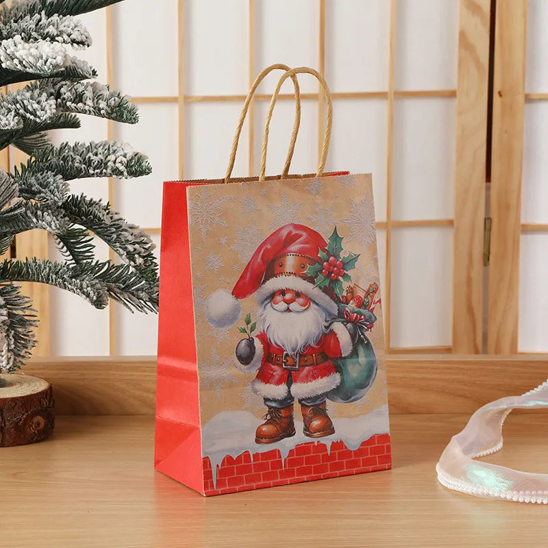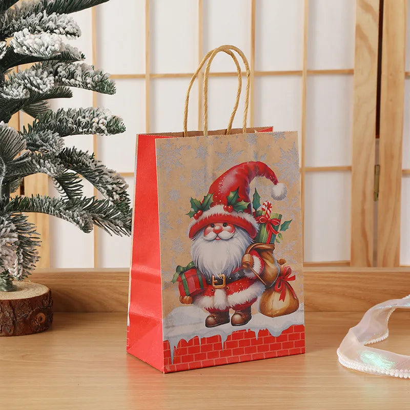 Christmas Cartoon Santa Claus Printed Handbag Kraft Paper Bag Shopping Packaging Gift Bag Festival Gifting Occasion