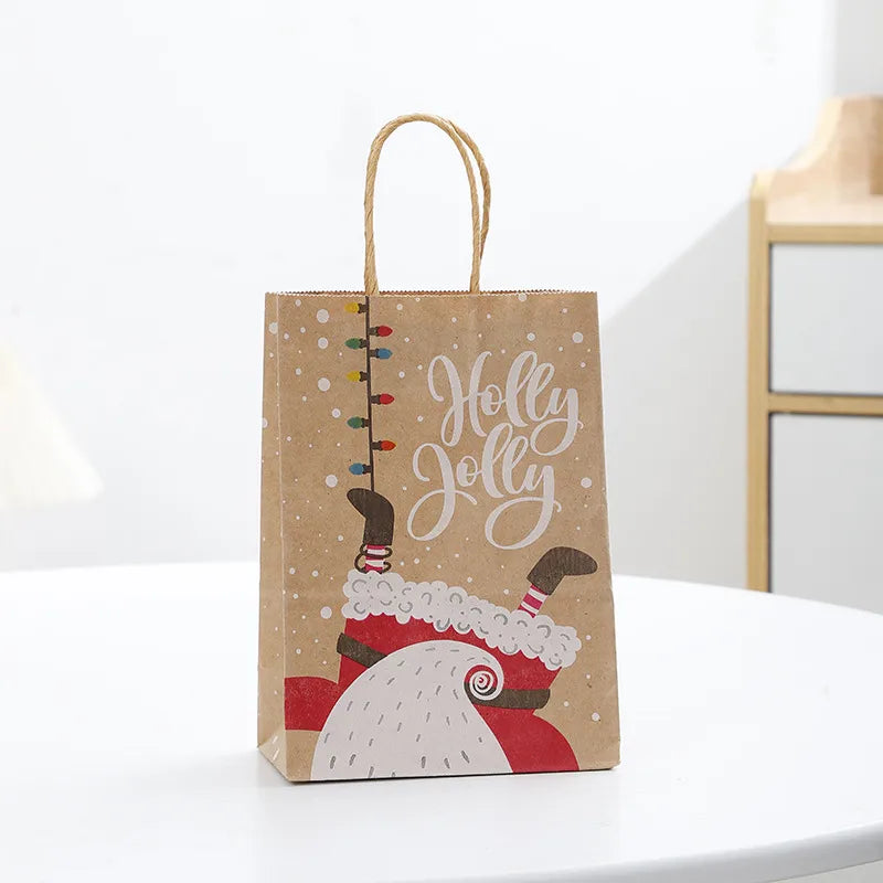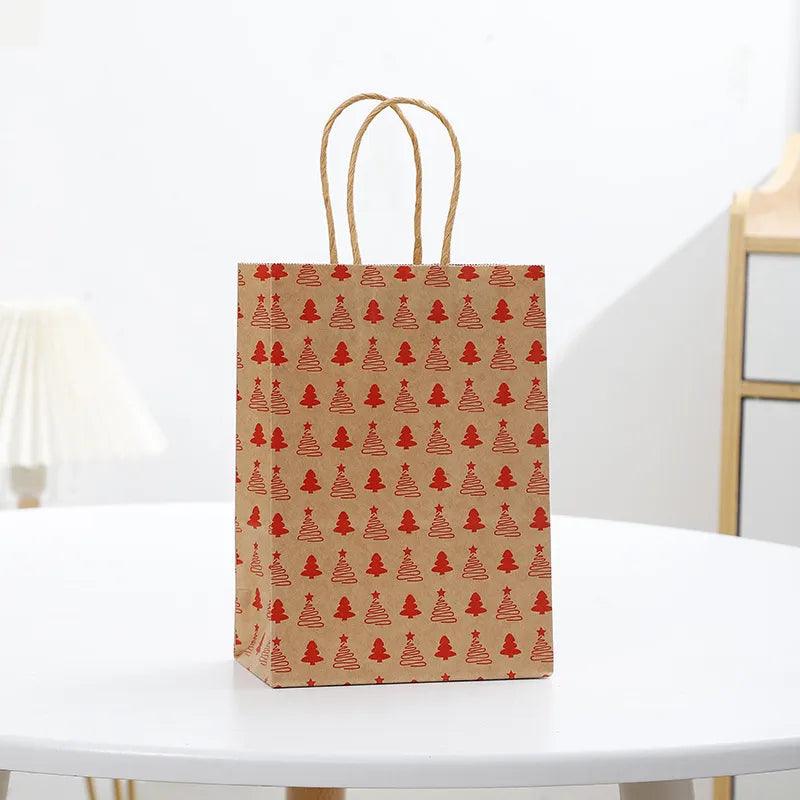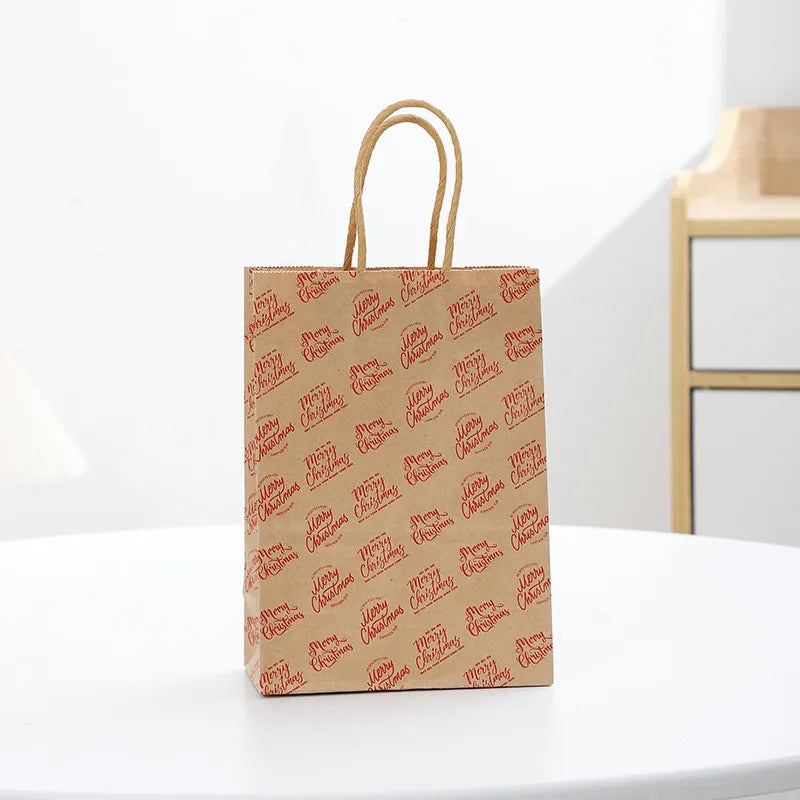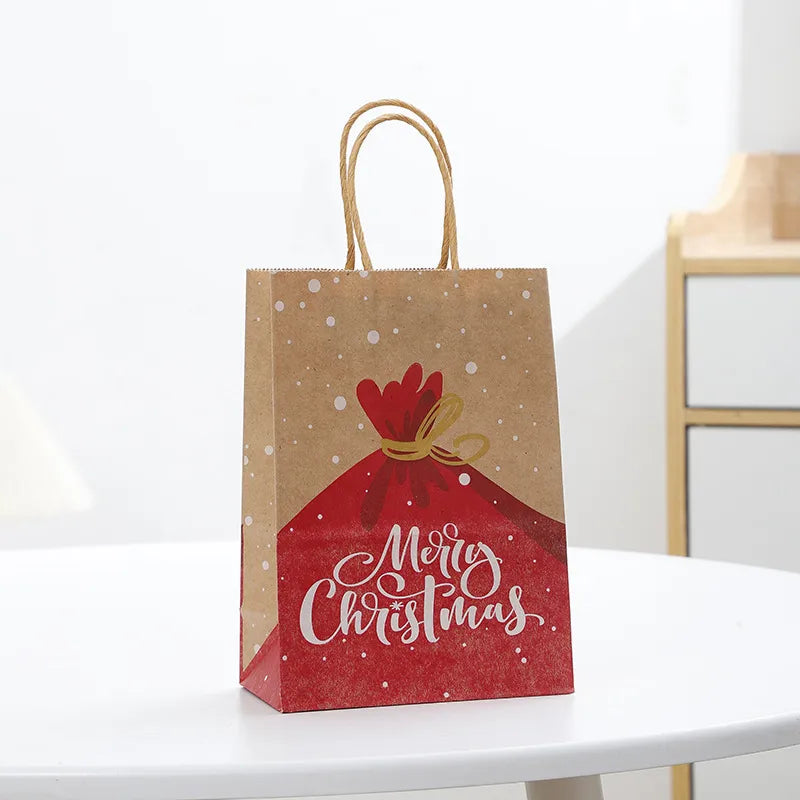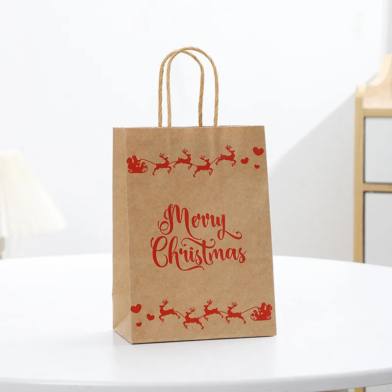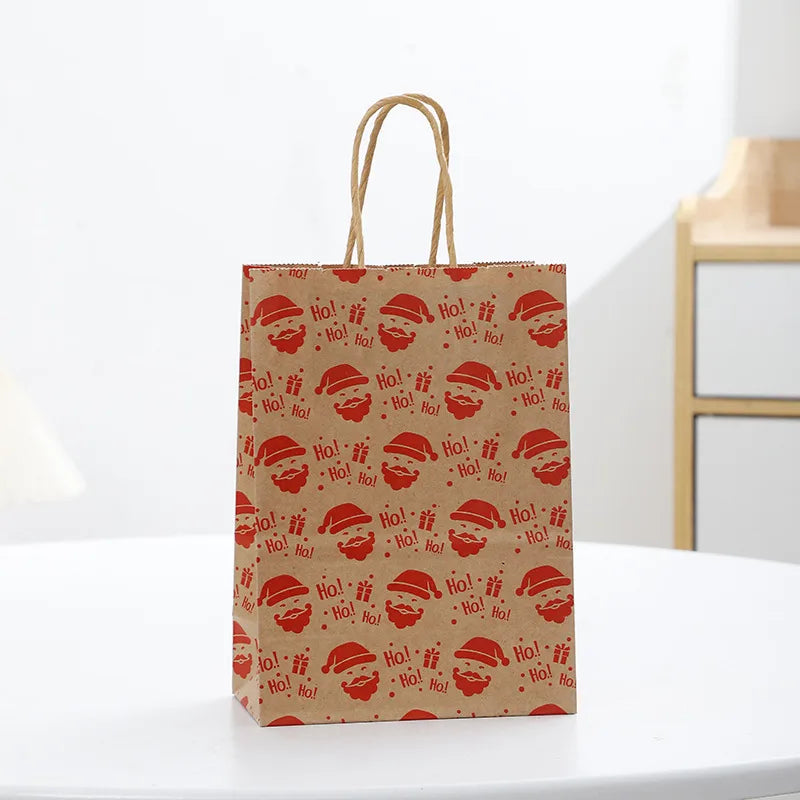 Christmas Series Handheld Gift Bags Kraft Paper Bags Direct Supply Holiday Occasion 120gsm Thickened Paper Material