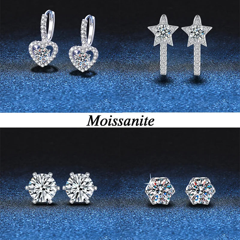 925 Sterling Silver 1 Carat Moissanite Women's Earrings Elegant Princess Style Sparkling Polished Finish For All Occasions