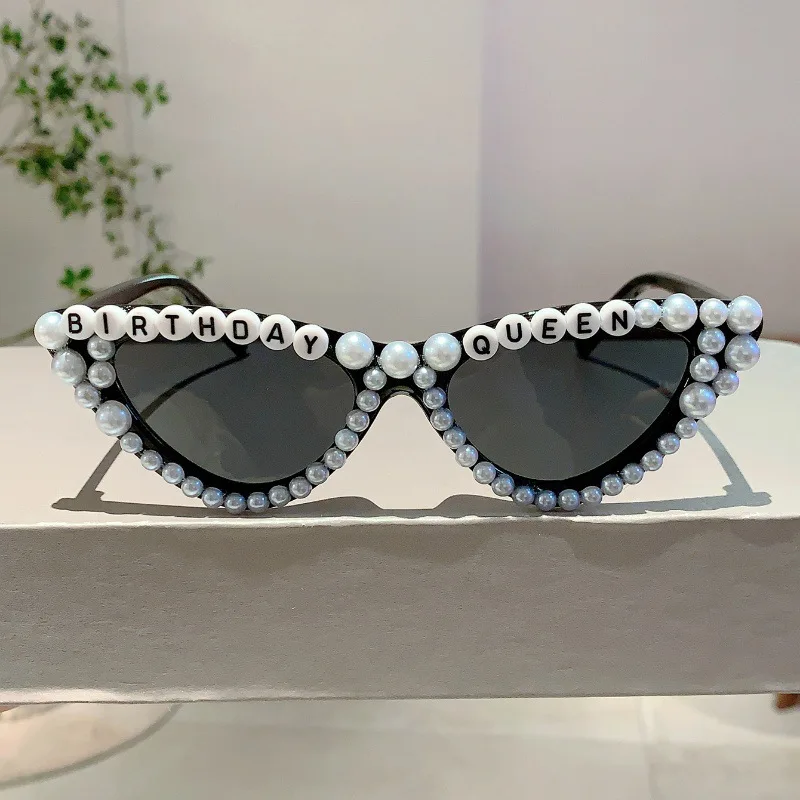 Cat Eye Design Gift Shades Shiny Pearl Decor Pink Present Glasses for Women's Birthday Party Favor Ladies Props Frame
