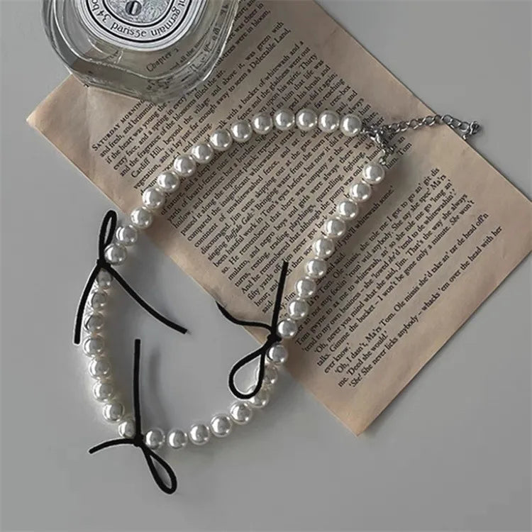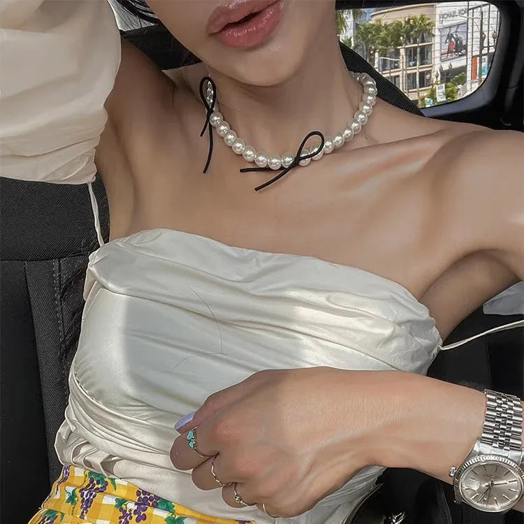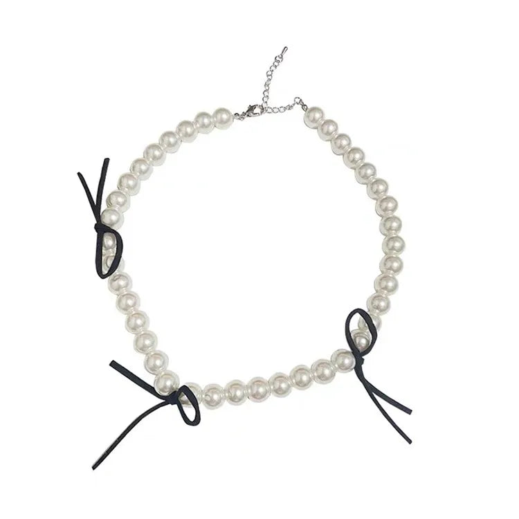 Elegant Pearl Clavicle Necklace For Women Butterfly Knot Baroque Style Choker Geometric Pattern Beaded Jewelry Accessory