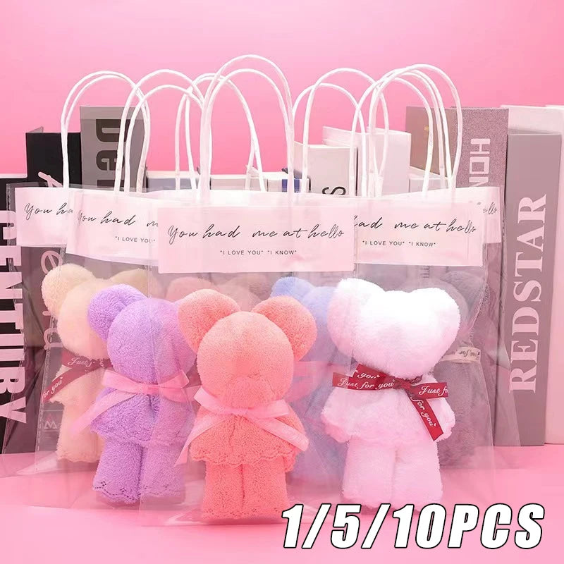 High Quality Coral Velvet Towels Gift Set Cartoon Cute Bear Shaped Face and Bath Towels Wedding or Special Occasion Gift gogodiggity