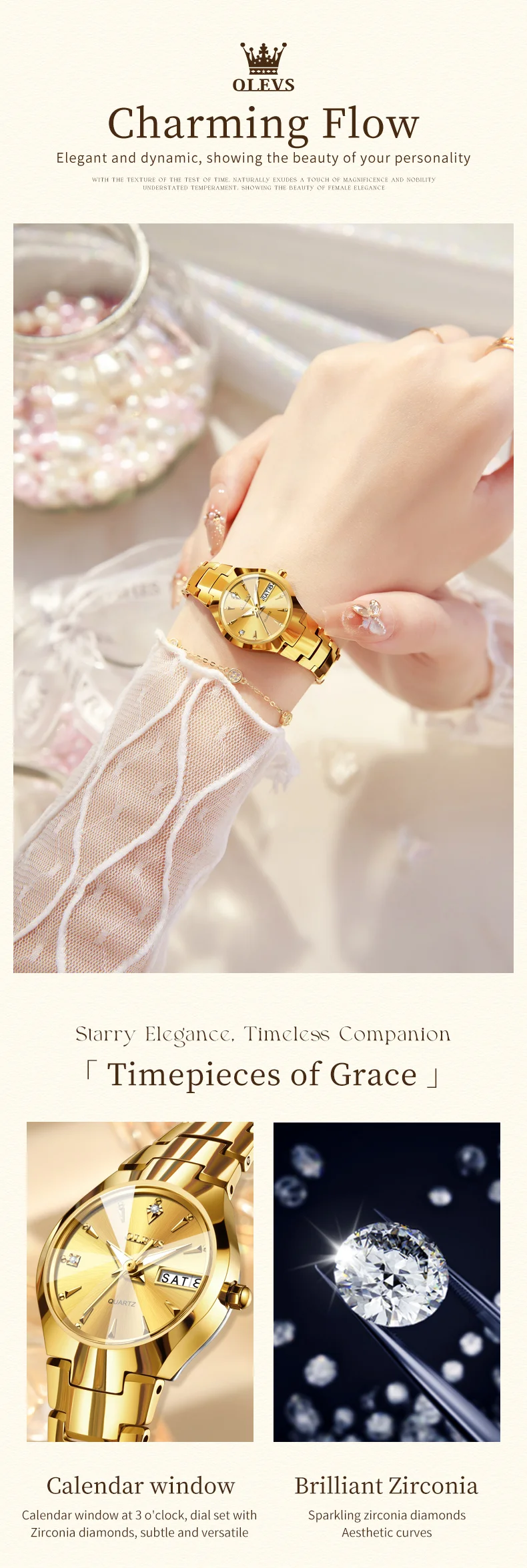 OLEVS Ladies Watch 8697 Luxury Elegant Quartz Watches Waterproof Tungsten Steel Day Date Watches For Woman Watch Bracelet Set