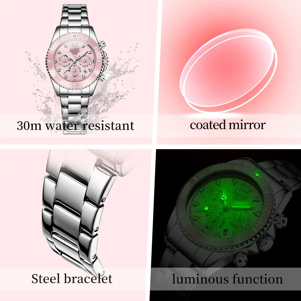 OLEVS Women Watch 5632 Elegant Original Quartz Watches Multifunctional Chronograph Watches For Women Set Bracelet Watch Reloj