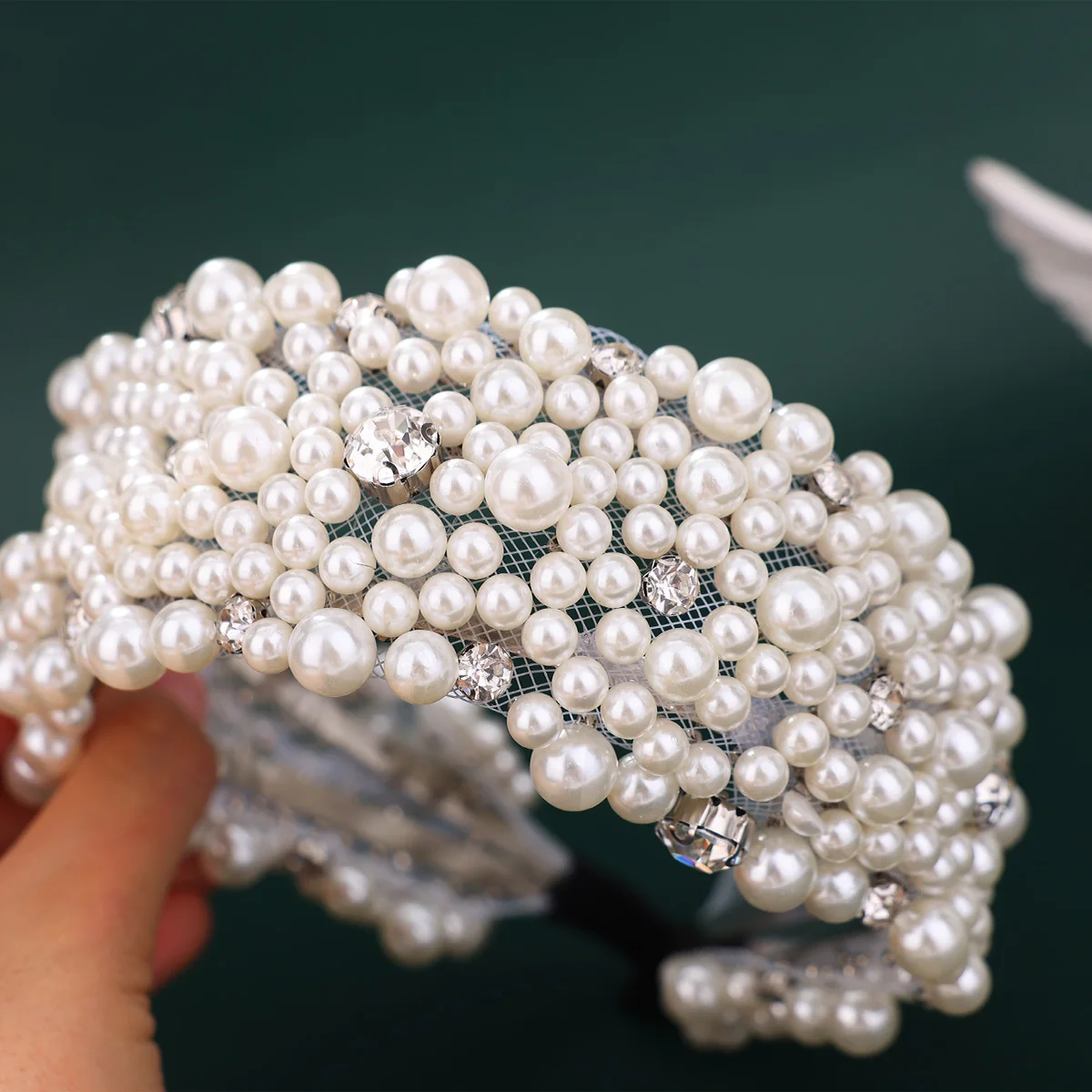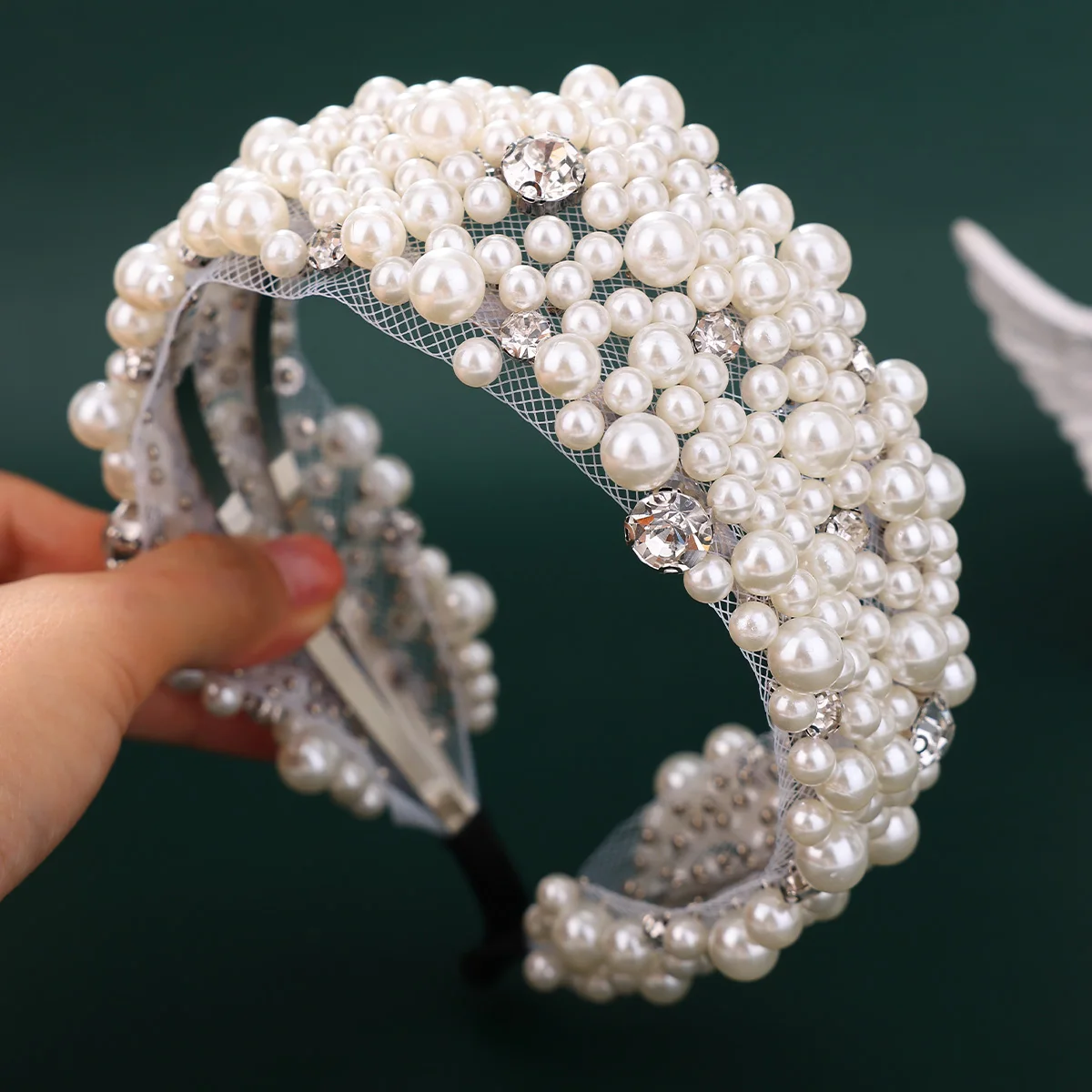 Wedding Bridal Pearl Headband Bride Hair Accessories Elegant Headpiece Women Hair Band Jewelry Party Hairwear